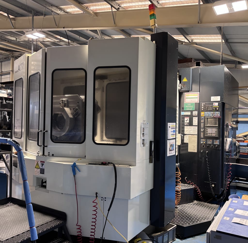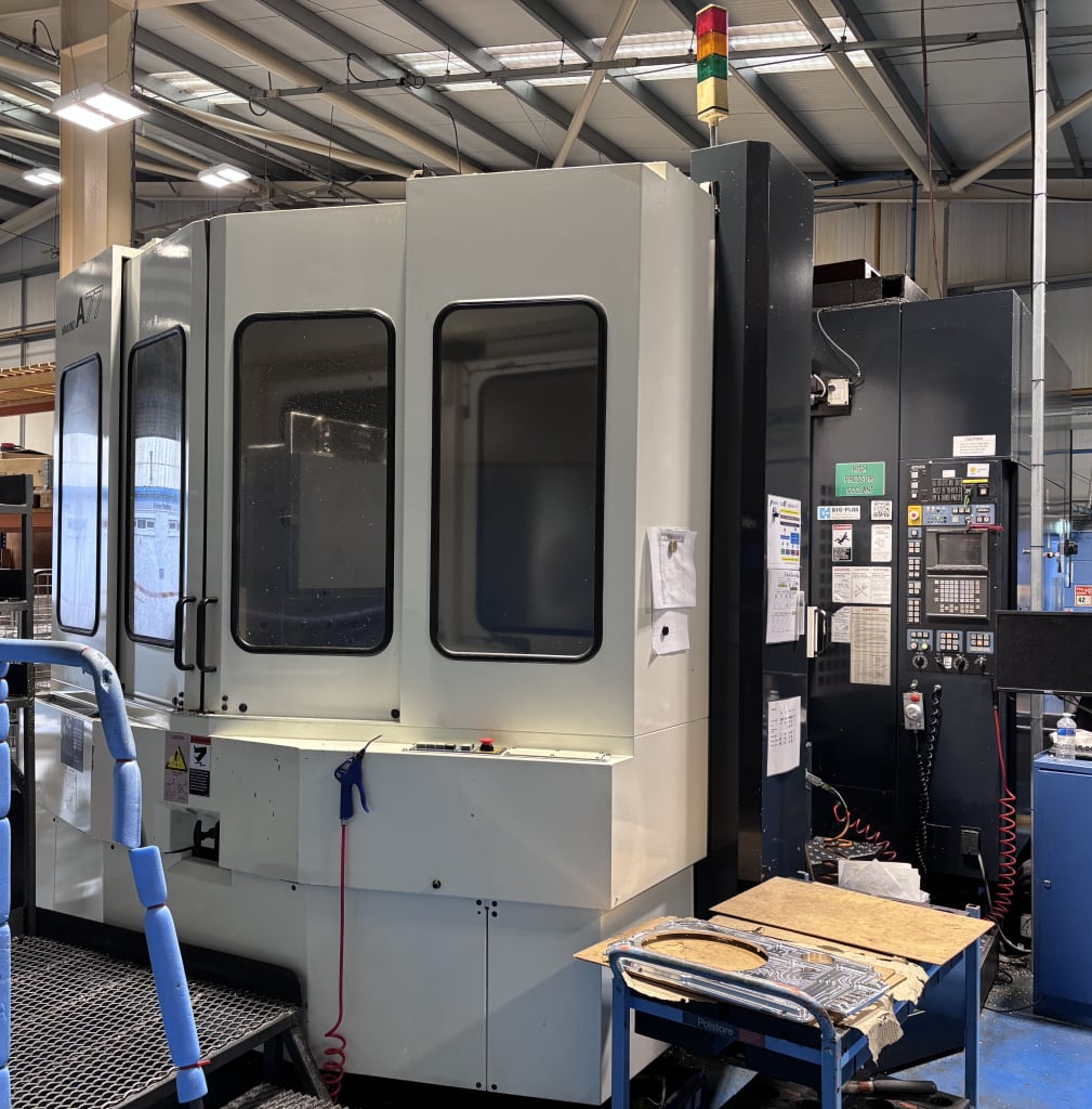 2006 Cincinnati MAG MEGA 5 (XT) HPC-800HP 5 Axis CNC Horizontal Machining Centre With Siemens 840D ControlCincinnati MEGA 5-800 5 Axis Horizontal Machining Centre Utilises The Basic MEGA Twin Ball Screw-Driven Axes Configuration In 'X'=1,425mm - 'Y'=1,350mm & 'Z'=1,265mm, MEGA 'B'-Axis Table 360,000 Positions In 0.001˚ Increments, Compact 'A'-A...- Makino A77 Twin Pallet CNC Horizontal Machining Centre With Makino Fanuc Professional 3 (16M) ControlPallet Dimension 630 x 630mm (4 'T' Slots). Maximum Pallet Load 1,200kg. Maximum Component Dimension Ø910 x 1,000mm. Axis Travel 'X'=800mm, 'Y'=750mm, 'Z'=700mm. Rapid Traverse 'X'=30m/min, 'Y'=30m/min, 'Z'=30m/min. Cutting Feed 'X, Y, Z'=3...